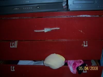 I cleaned my undie drawer.  It was actually easy.  I threw everything away, which was not a big sacrafice since I had not worn anything IN the drawer for six months.  The undies I have been wearing have been living in the laundry basket because I couldn't get to the drawer.....SO I just threw it all in the trash!  Well, actually, I saved 2 pairs of new panty hose.  Not sure why as I never wear panty hose, but maybe I will need to rob a bank and I can wear them as a mask.....