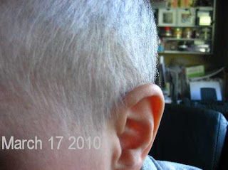 I'm considering shaving it off again to get rid of the white fluffy chemo hair and see if "darker" hair will grow. If not, maybe the new stuff won't be so whispy? I'll give it another week and then decide...