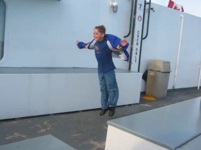This is DS #2.... We were on the ferry to Victoria B.C. and he figured since the ferry was moving if he jumped into the air he would move back on the ferry. He was 10 at the time.