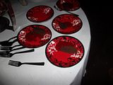 The presentation was not all that great....would have looked much better on a white plate with the coulis in a design rather than just poured onto a plate...but it got rave reviews and actually was an easy recipe. She said the plates were Twilight plates. She had some mushroom ravioli which was very good even though she said it came out of a bag.