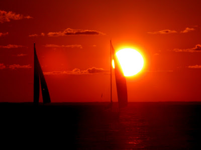 It's a seriously rainy day today in Door County, but last night was a very rare, two sail-boat sundown. I kept thinking where's Saint to spot me for the birds? There's not a sundown I savor without thinking of your family together here in our midst.