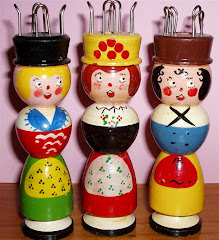 I was just thinking of those things as I read about the wool braiding. My Grandmother made me one from an actual spool and nails She gave me some pale blue yarn/wool and a needle with a hook on it. Because the spool was so narrow, there wasn't a hollow middle, I had yards and yard of the pale blue "garden snake" type thing. My grandmother also crochets really cute stylized dogs and octopus with stryafoam dballs somehow wrapped in the wool for the head. She was a very neat lady !