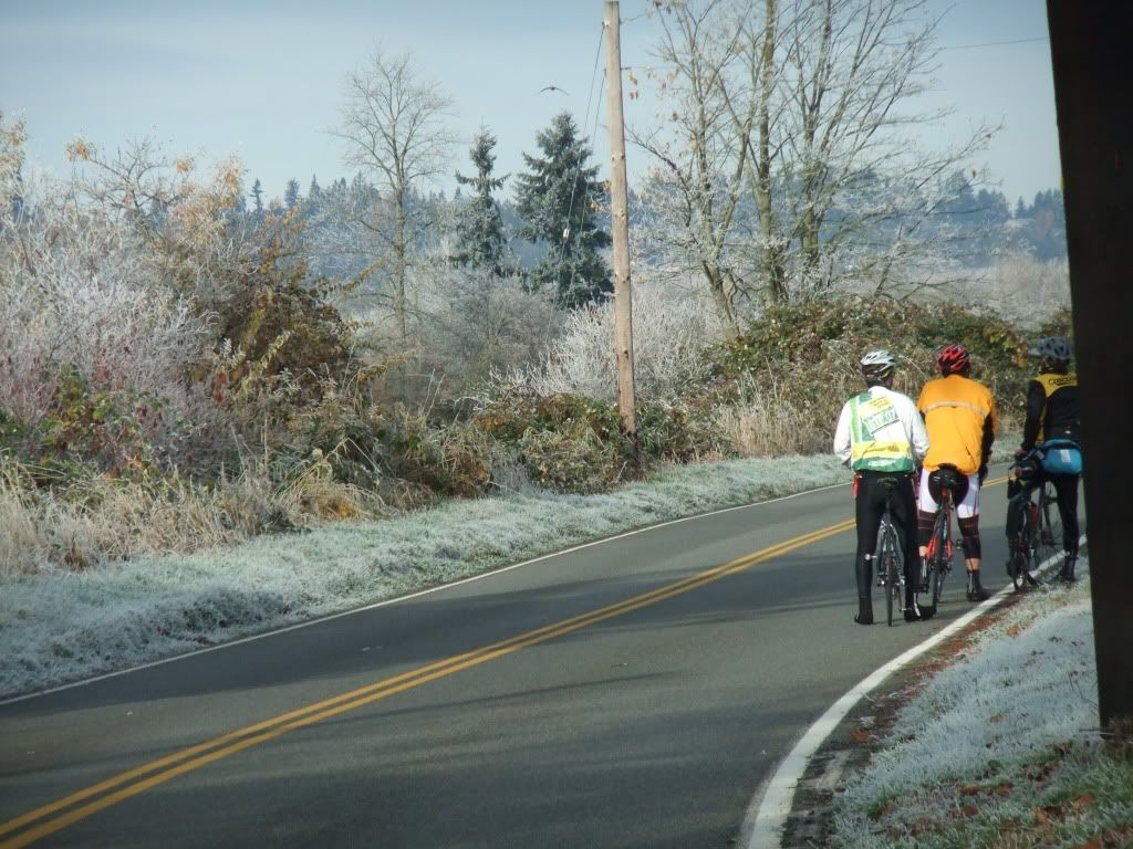 Here are two pictures from Sunday's frosty ride. Was about 28 degrees warming up to the high 30s.
