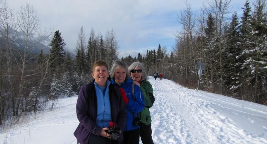 Welcome back, Nihahi! Those majestic mountains, the snow, streams, trees and elk are so beautiful, and you and your friends look as if you are enjoying yourselves tremendously. Good for you! Nothing like a girls only outing to recharge your batteries. Hope the alien behaved, and that it did not need too much 'pea' time! I'm still nursing my back with a heated bag of beans, but will be doing some exercise again today. Can't just sit still like this.